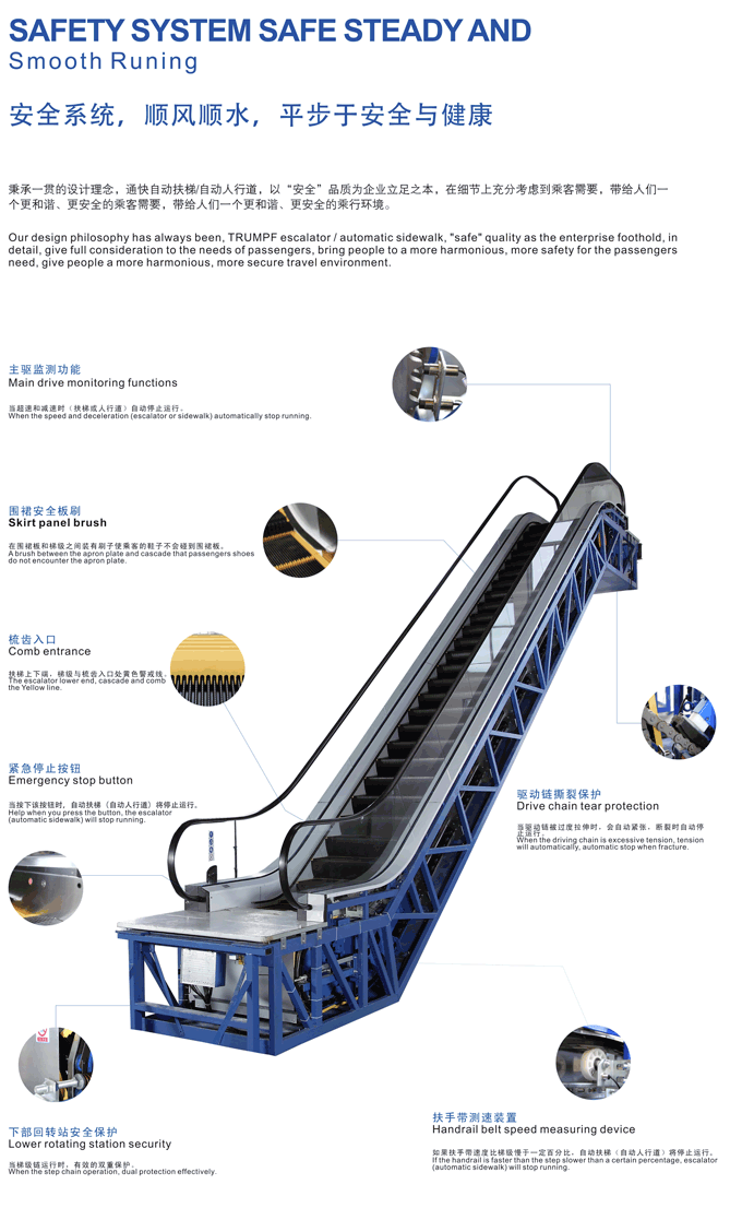 自動(dòng)人行道:moving sidewalk,不大于12度。 在水平或微傾斜方向連續(xù)運(yùn)送人員的輸送機(jī)。適 自動(dòng)人行道用于車站、碼頭、商場、機(jī)場、展覽館和體育館等人流集中的地方。出現(xiàn)于20世紀(jì)初。結(jié)構(gòu)與自動(dòng)扶梯相似,主要由活動(dòng)路面和扶手兩部分組成。通常,其活動(dòng)路面在傾斜情況下也不形成階梯狀。